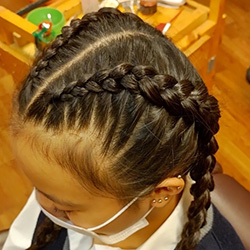 一般的に言う「お下げ髪」が出来る長さが必要です |