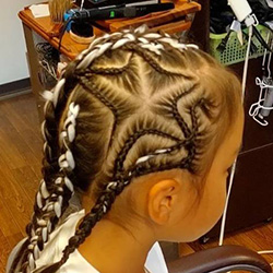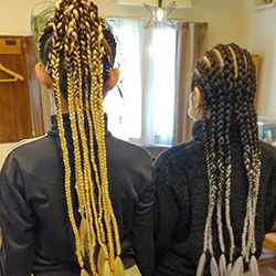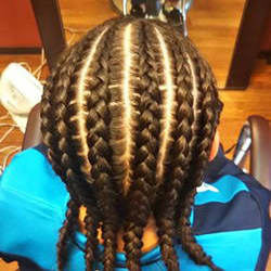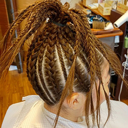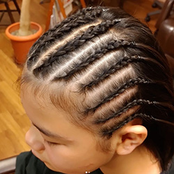 昨今ボクサーブレイズと呼び、今人気のコーンロウスタイルのひとつです。 |